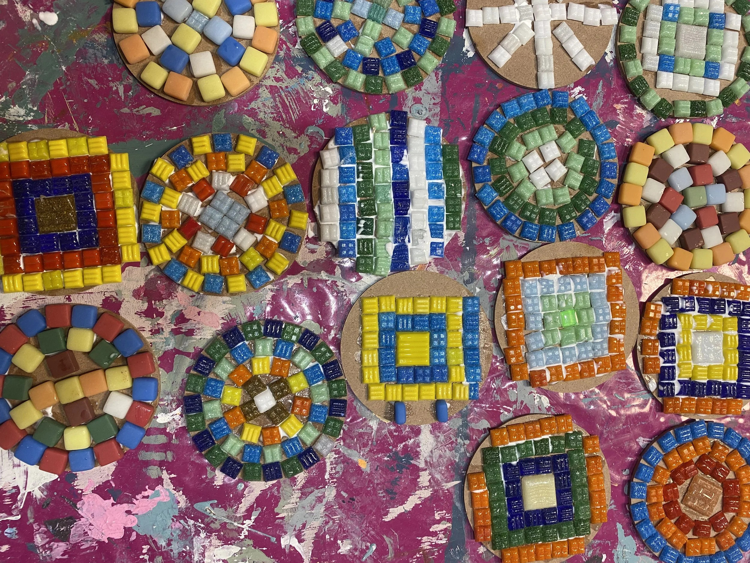 Mit bunten Mosaiksteinen kreative Werke auf Fliesen oder Holz erstellen.
